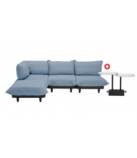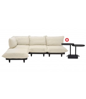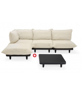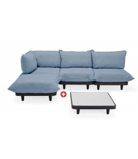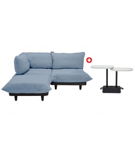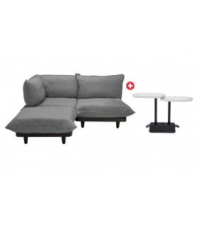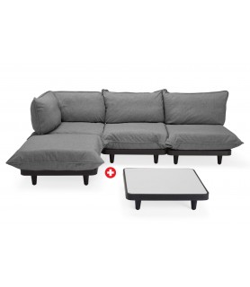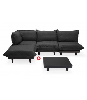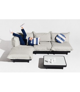 El Paletti es un sofá de salón modular. Esta característica le permite configurar su propio conjunto de salón a medida. ¿Prefiere un sofá de esquina, uno en forma de U, una chaise longue o dos bancos uno junto a otro? Decídalo con unos pocos clics. Relájese y desaparezca entre los cojines más lujosos que jamás haya visto. Y no se preocupen por las caídas. El Paletti es tremendamente resistente y ofrece muchos años de disfrute. Cúbralo con un paño húmedo, pulverice a alta presión o lave las fundas de los cojines en la lavadora. En poco tiempo su Paletti volverá a estar como nuevo. El Paletti puede soportar los intensos chaparrones de verano, pero en caso de lluvia persistente recomendamos utilizar su funda.