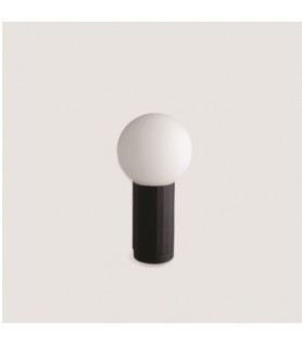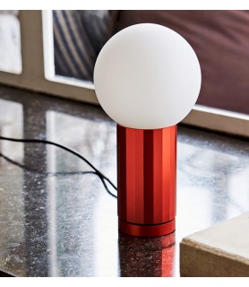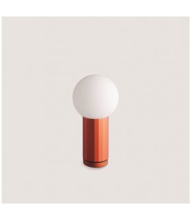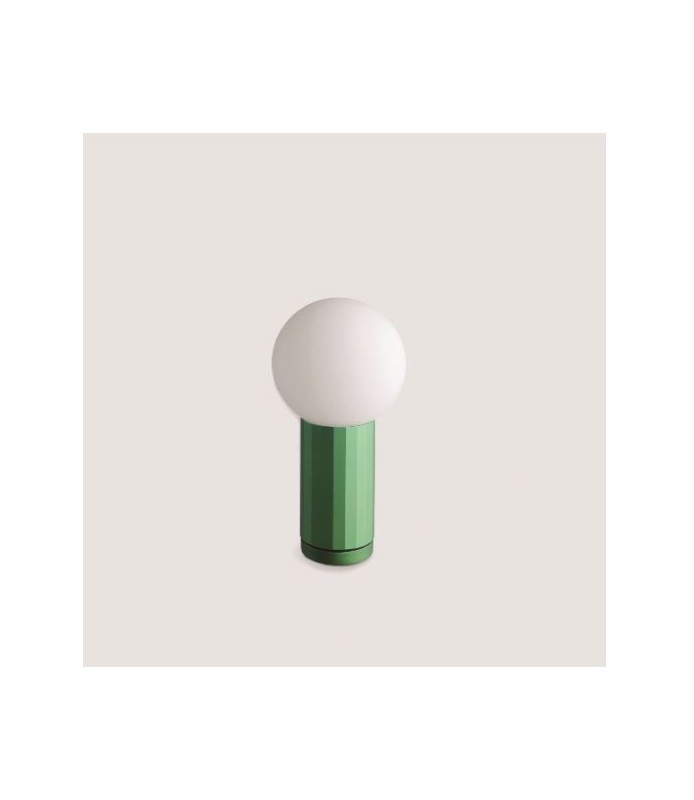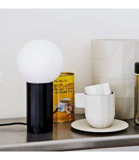 A beautifully unified piece of design made from aluminium and opal glass. The base is a faceted cylinder that works as both the light switch and the stem that holds the spherical glass diffuser in place. Turning the base in a clockwise direction clicks the LED light on, with further rotation increasing the lumen output. This movement built into the design, allows the user to intuitively brighten or dim the light. The base comes in four anodised finishes: black, aluminium, orange or green. Turn On is a design made at human scale, effortlessly simple and pleasing to touch.