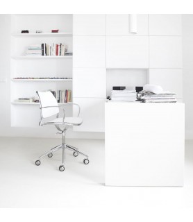 Gas es un sillón operativo ligero, atemporal y cómodo para el trabajo en casa o en la oficina, regulable en altura sobre ruedas.