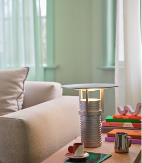 Con su combinación distintiva de diseño industrial y escultórico, la lámpara Set presenta una luz orientada hacia arriba que brilla a través de una pantalla de aluminio, emitiendo un brillo brillante pero indirecto. La altura de la pantalla ajustable de la lámpara, facilitada por hilos en el cuerpo, permite una rotación táctil y permite cambios personalizados en el ángulo y la intensidad de la luz. Esta lámpara única irradia carácter y se integra perfectamente en una variedad de espacios, ya sea colocada en el piso, en los alféizares de las ventanas, en los aparadores o en cualquier lugar preferido, haciendo una declaración audaz como pieza central distintiva.