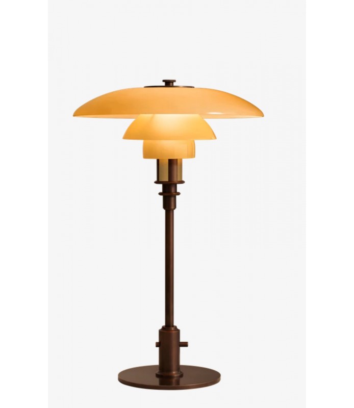 Esta exquisita lámpara de mesa PH 3/2, fabricada con latón envejecido y vidrio soplado de cuatro capas, forma parte de la colaboración Louis Poulsen | FENDI Casa, que se estrenó en la Semana del Diseño de Milán en 2023. Cada una de las piezas de la colección son versiones reimaginadas de los icónicos diseños de Poul Henningsen, que reflejan sutilmente el lenguaje de diseño distintivo de FENDI a través de rayas pequinesas y un lujoso esquema de colores.