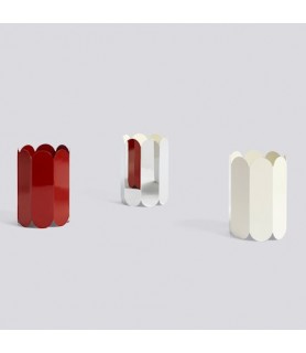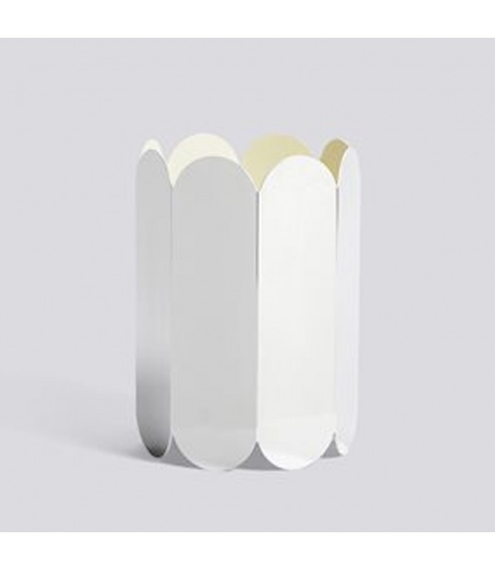 Diseñado por el dúo belga Muller Van Severen, el jarrón Arcs está formado por una cadena unificada de arcos verticales que crean una elegante silueta festoneada. Fabricado en acero inoxidable con acabado de espejo o acero en diferentes colores, y disponible en dos tamaños