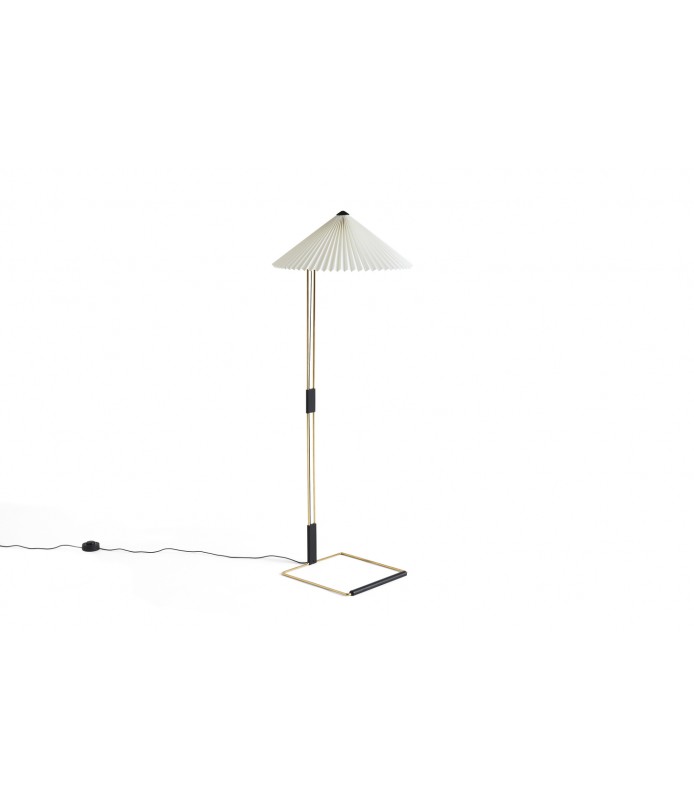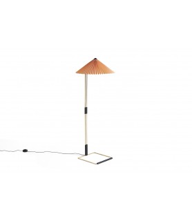 La lámpara de pie Matin ofrece un diseño contemporáneo pero poético, con una construcción que combina delicadeza visual con robustez física. El diseño compacto consta de un esbelto marco de acero de latón pulido complementado con herrajes en negro mate y juntas de aleación de zinc en la base, que se combina con una pantalla de algodón plisado en una variedad de colores cuidadosamente seleccionados. La fuente de luz es un LED integrado, que ofrece una luz difusa que va acompañada de un regulador de intensidad digital en línea para ajustar la salida de luz si es necesario.