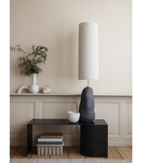La serie de lámparas Hebe actualiza la lámpara clásica con formas atrevidas y un toque artístico. Inicialmente esculpida a mano, la silueta fluida de la base está inspirada en la naturaleza y tiene una nota femenina. Hecha de cerámica, esta base alta presenta un acristalamiento de alto brillo en un matiz azul profundo, lo que le da a la lámpara una forma fantástica de reflejar la luz en sus curvas. Combínalo con una de las pantallas textiles a juego de la serie, disponible en un curry blanquecino natural o más atrevido.