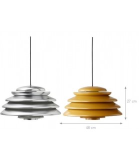 HIVE Design: Verner Panton, Ø48 cm / H: 27 cm Painted metal pendant with direct downward light and layered shades diffusing the light throughout the surroundings. Incl. Canopy in painted metal Cord: 300 cm black fabric Light source: 220V E27 max. 60W