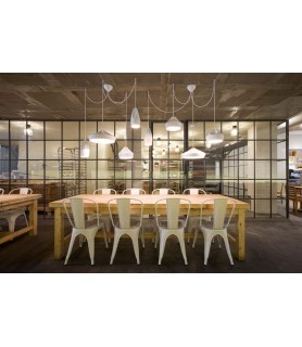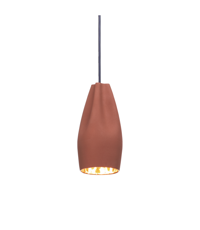 El concepto Pleat Box parte de un juego formal en el que tras diseñar digitalmente la caída del pliegue textil, se aplica la silueta al material cerámico. El exterior de la lámpara se ofrece en cerámica blanca, negra, terracota y gris, resultado del reciclaje de diferentes esmaltes.