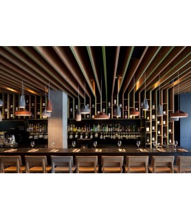 El concepto Pleat Box parte de un juego formal en el que tras diseñar digitalmente la caída del pliegue textil, se aplica la silueta al material cerámico. El exterior de la lámpara se ofrece en cerámica blanca, negra, terracota y gris, resultado del reciclaje de diferentes esmaltes. El interior es de esmalte blanco brillante, que emite destellos que enriquecen la luz de la lámpara, o en oro de 24k, generando una luz extremadamente cálida. La colección Pleat Box también se ofrece con tecnología LED integrada, consiguiendo una luz indirecta que evita el deslumbramiento.