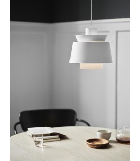 Para el arquitecto Jørn Utzon, ganador del Premio Pritzker, los dibujos de ingeniería naval de su padre provocaron una fascinación por los barcos que duraría toda su vida. Tal interés se ilustra en Utzon JU1, un colgante con una distintiva forma de cuello y líneas nítidas que evocan la silueta industrial de un barco. Lanzado por primera vez en 1947, el colgante Utzon está disponible en dos variantes: latón y blanco, y está elaborado en latón y acero lacados.