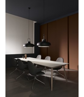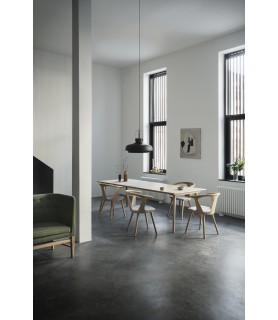 La ambición de Space Copenhagen era diseñar una lámpara con un toque industrial simple, pero que fuera elegante y poética. El Copenhagen Pendant es un ejercicio de contrastes. Combinando lo clásico y lo moderno, lo marítimo y lo industrial. La serie comenzó con un colgante en tres tamaños en 2014 y se amplió en 2018 con dos lámparas de mesa, una lámpara de pared y una lámpara de pie.