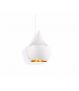 Beat Fat es una lámpara de techo mediana que presenta un interior cálido y dorado en contraste. Hecha de latón hilado a mano esculpido por artesanos en el norte de la India, la creación de esta lámpara Beat es parte de un proceso antiguo que tarda cuatro días en completarse. El interior batido se reutiliza para refractar y reflejar una luminosidad suave y cálida y la escala arquitectónica emite una mayor salida de luz.