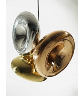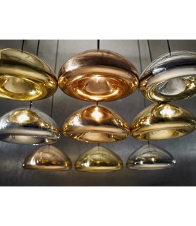 inspirado en los matraces de vacío, Void está hecho de metal puro formado en un complejo tono de doble pared. La luz de superficie vacía se puede utilizar tanto en paredes como en techos. La colección también incluye colgantes de cobre, latón y acero.