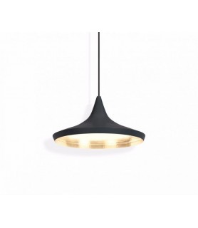 Una gran pantalla de 60 cm de ancho con una estructura abierta inusual que es ligera y llena el espacio. Disponible en acero y latón.