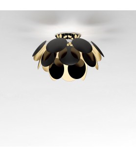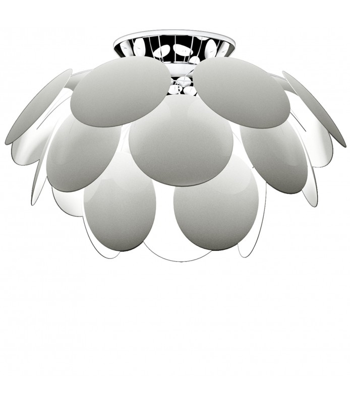 Si hay un diseño icónico en la colección de Marset es la Discocó: exuberante, también cuando está apagada, la riqueza de luz que emite esta lámpara procura una iluminación directa descendente y, al mismo tiempo, un efectista juego de luces y sombras. Su detallado estudio de la luz incidente y rebotada en ambas caras de los discos que la componen aporta varios matices lumínicos y también profundidad al objeto. La semiesfera cromada del núcleo, donde se fijan los discos, crea reflejos suplementarios. Apagada, la Discocó es un objeto bello que no pasa desapercibido, llena el espacio. Disponible en blanco, gris, beige y negro oro en 2 tamaños diferentes. En todas sus versiones la Discocó consigue una luz extraordinariamente acogedora.