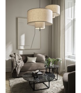 La familia de iluminación Margin es la interpretación moderna del diseñador John Asbury de una luminaria clásica. Al explorar una tipología escalonada para la iluminación, las sombras que se cruzan de Margin difunden suavemente la luz e instantáneamente establecen el tono con calidez y tacto. La suavidad del tejido se ve atemperada por una silueta limpia y gráfica que otorga cierta presencia y volumen a un espacio. Es el sentido de las proporciones, junto con detalles como el elemento lineal a través de la lámpara, lo que agudiza la estética y permite que se desarrolle el carácter especial de Margin.