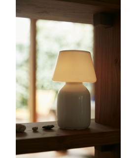 Diseñada por STUDIO 0405, la lámpara portátil Apollo es una lámpara portátil y de pie para uso interior y exterior que crea espacio e intimidad dondequiera que se coloque. Fabricada a mano en una sola pieza de vidrio opalino, sus curvas redondeadas y su silueta unificada son una interpretación contemporánea de la forma clásica de la lámpara. La fuente de luz y la batería recargable están ocultas dentro de la pantalla, iluminando la parte superior para proporcionar un brillo ambiental cálido. La portabilidad de Apollo y su deliberada simplicidad de diseño lo hacen adecuado para su uso en muchas habitaciones de un entorno doméstico, así como en cafeterías, patios y otros espacios al aire libre.
