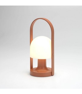 Sus formas sencillas y livianas, su pantalla basculante y las distintas intensidades de luz la han consolidado como una lámpara bella y práctica. Además de la versión en acabado madera, se edita en distintos colores: rosa, azul, terracota y verde. El asa sigue siendo de madera, en este caso pintada.