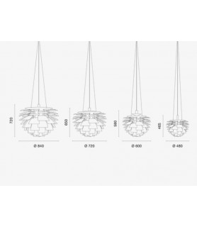 En 1958, Poul Henningsen diseñó la PH Artichoke para Langelinie Pavillonen, un restaurante modernista de Copenhague, en el que hoy día esta luminaria sigue haciendo las delicias de sus comensales, además de ser considerada un emblema del diseño internacional. La forma distintiva y el diseño de esta lámpara de suspensión garantizan una iluminación completamente sin deslumbramiento, sin importar desde qué ángulo se observe. Esto se debe a sus 72 hojas, cuidadosamente colocadas, de donde también se toma la inspiración para el nombre de esta lámpara de suspensión.