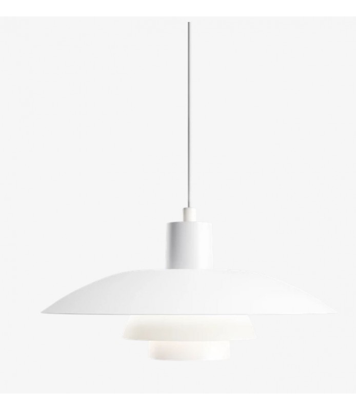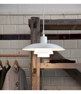 Poul Henningsen diseñó el sistema de tres pantallas en 1925-1926. Junto con Louis Poulsen, PH diseñó las primeras lámparas en usar este sistema para una exposición en París. Continuó trabajando con Louis Poulsen hasta su muerte, acaecida en 1967. A lo largo de su vida, PH buscó crear una iluminación directa y sin deslumbramiento en los sitios donde más se necesitaba. Además, usó bombillas incandescentes como fuente de luz para crear sombras suaves. La PH 4/3 Metal Suspendida nació en 1966