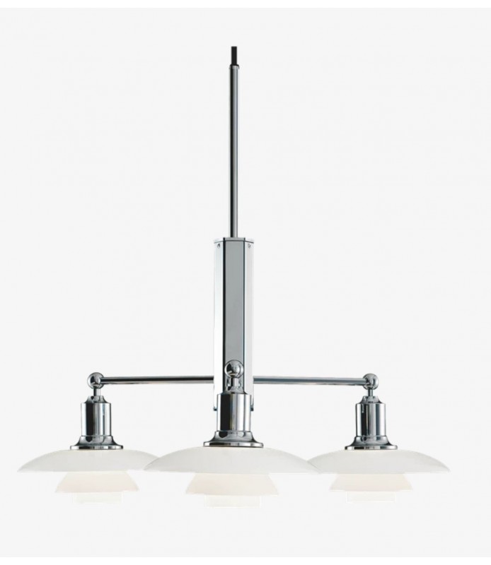 Poul Henningsen diseñó el sistema de tres pantallas en 1925-1926. Junto con Louis Poulsen, PH diseñó las primeras lámparas en usar este sistema para una exposición en París. La colaboración entre ambos continuó hasta su fallecimiento, en 1967.