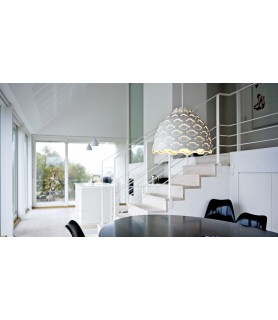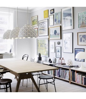 La luz concentrada de la fuente de luz se filtra a través de un difusor opalescente para garantizar una distribución de la luz suave y confortable. La luz suavizada crea una atmósfera agradable dentro de la sombra y asegura un suave efecto de iluminación en el exterior, ayudando a iluminar y definir la forma del producto cuando se enciende.