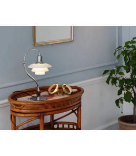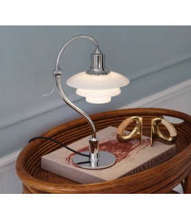 Diseñada por Poul Henningsen en 1931, la lámpara PH 2/2 Question Mark Sobremesa se basa en el icónico sistema de tres pantallas conocido como sistema PH, creado originalmente en 1926, donde tres pantallas de vidrio soplado proporcionan una luz suave y sin deslumbramientos. Con un nombre que deriva de la curvatura del vástago, esta lámpara de mesa pequeña tiene una forma característica y un cabezal ajustable que puede girar 45 grados para dirigir la luz donde sea necesario.