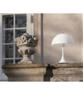 Verner Panton creó la lámpara Panthella en colaboración con Louis Poulsen en 1971. Hoy en día, Panthella es conocida como uno de los iconos del diseño más significativos de Panton con su reconocible forma orgánica. La pantalla superior dirige la excepcional luz antideslumbrante hacia abajo, para que a su vez se refleje en la base en forma de trompeta. La lámpara Panthella 250 Portable es una versión portátil de la popular lámpara Panthella Sobremesa