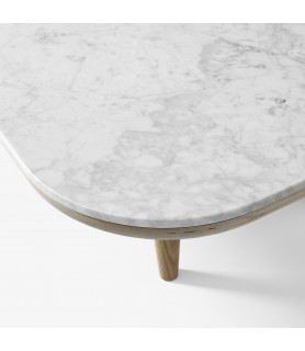 La base de la mesa está hecha de roble macizo y chapado en roble. La placa de mármol está fresada con CNC y la superficie está pulida.