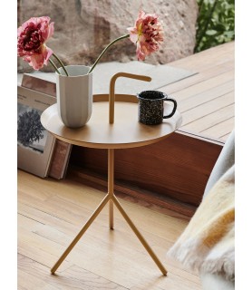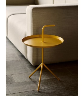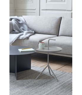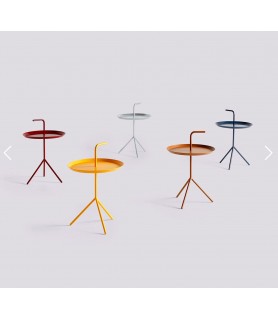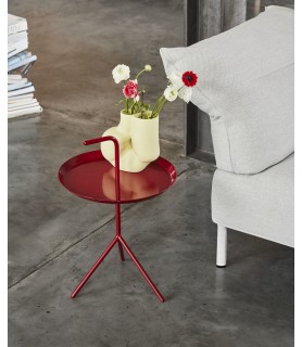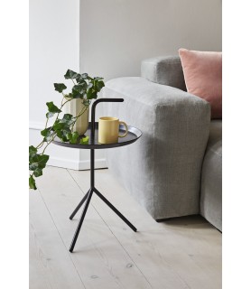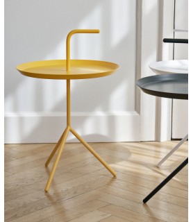 La mesa auxiliar portátil de Thomas Bentzen se llama acertadamente "No me dejes". Abreviado como DLM, cuenta con un práctico asa que permite transportar la mesa de metal de una habitación a otra. Aunque tiene una estructura liviana y portátil, las tres patas inclinadas brindan una gran estabilidad. Disponibles en dos tamaños, DLM y DLM XL son alternativas funcionales a las mesas de centro tradicionales. Adecuado para uso interior en la mayoría de entornos domésticos u oficinas.