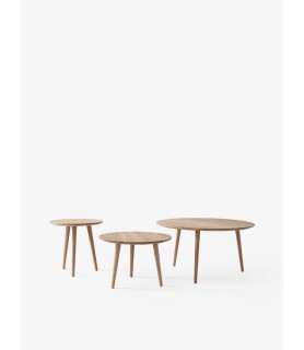 Sentado dentro de la serie In Between más grande, esta mesa de salón se hace eco cuidadosamente de muchos aspectos de la silla In Between, desde su suave curvatura hasta la separación exterior de sus patas. Está disponible en dos alturas y se presenta en tres acabados: roble lacado negro; roble aceitado; y roble ahumado aceitado.