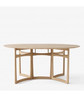 Buscando crear una pieza versátil que se adaptara a su entorno, el dúo de diseñadores Hvidt & Mølgaard ideó esta hermosa mesa de salón en 1956. Como parte de la serie Drop Leaf, cuenta con los mismos marcos de madera curvados y un diseño fácilmente plegable. Disponible en nogal macizo o roble.