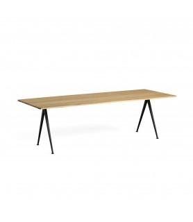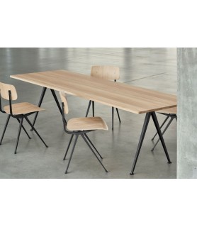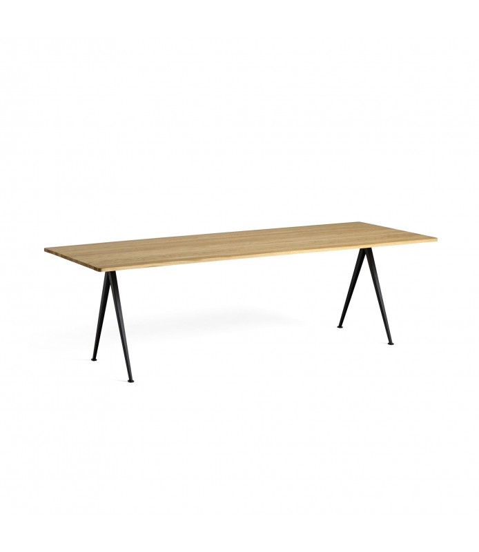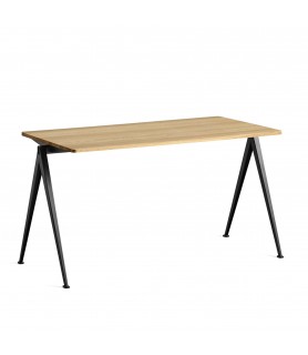 Diseñada para ser funcional, ligera y resistente, la mesa Pyramid presenta una base de chapa de acero con una mesa rectangular de roble. Originalmente creada por Wim Rietveld mientras trabajaba en Ahrend en la década de 1950, la colección de acero recortado ha sido relanzada por HAY junto con Ahrend. La mesa viene en dos modelos, con y sin voladizo, y es adecuada para usar en una amplia gama de instituciones educativas, entornos corporativos y hogares privados.