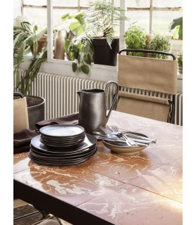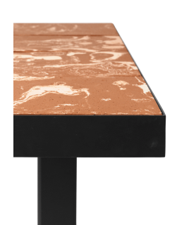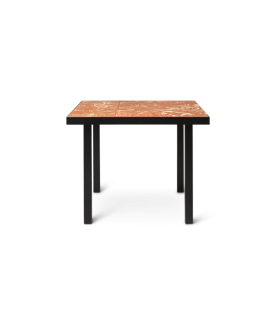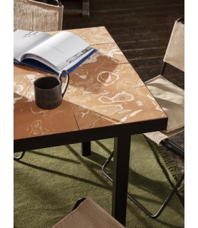 Uniendo forma y función, la mesa de café Flod presenta un marco gráfico y estilizado elaborado con acero galvanizado con recubrimiento en polvo que contrasta agradablemente con la textura cálida y natural de las baldosas cerámicas. Elaboradas en Italia con la arcilla más fina del río Po, las baldosas tienen una rica tactilidad y se han fabricado únicamente con agua, fuego y manos humanas. Perfectamente adaptadas para la vida interior y exterior, estas baldosas se colocan en el marco sin sellar, lo que permite que la lluvia o la humedad pasen suavemente entre la mesa y a través del marco perforado.