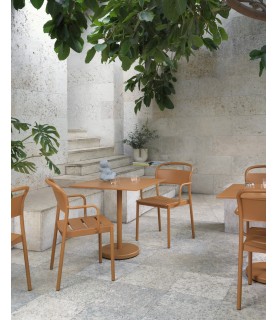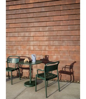 Product description The Linear Café Table is characterized by its clean lines and elegant shapes, allowing for it to complement any outdoor setting. Use the design on its own or in company with the Linear Steel Armchair or Side Chair.