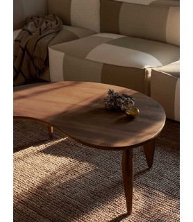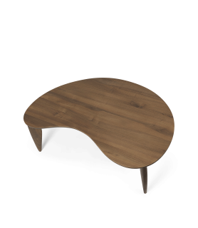 Fabricada con nogal europeo macizo certificado FSC™, la mesa de centro Feve tiene una expresión orgánica y delicada. Como referencia a su forma distintiva, su nombre proviene de la palabra francesa Fève, que significa frijol. Las patas de la mesa están talladas en formas elípticas estiradas que enfatizan la silueta elegante y femenina de la mesa y agregan equilibrio al diseño, mientras que los deslizadores ajustables aseguran que la mesa esté siempre nivelada.