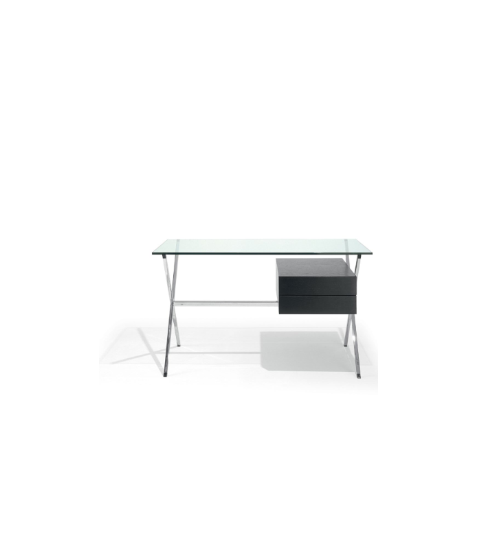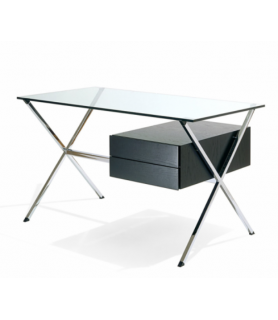 El escritorio de Franco Albini de 1928 combina vidrio, acero y madera con una claridad y equilibrio sorprendentes. Una clara demostración de la filosofía de diseño racionalista y la estética minimalista de Albini, el diseño deriva su atractivo a través de la simplicidad de la forma y la celebración del material, sin ornamentaciones superfluas.