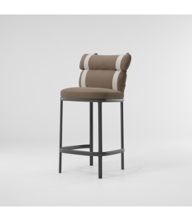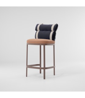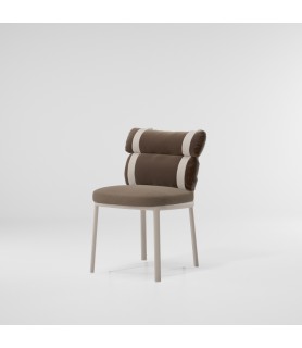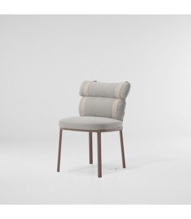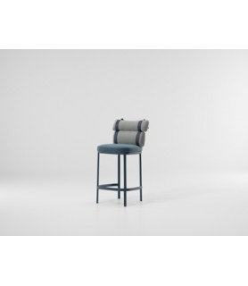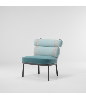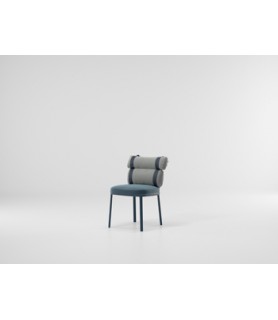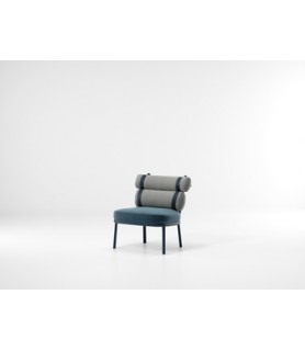 Esta irónica intervención sobre la tapicería convencional convierte un respaldo regular en dos 'envolturas' independientes conectadas por correas de colores. Unas estructuras gráficas de aluminio enmarcan al protagonista de esta silla, los cojines.
