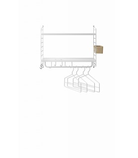 Con una entrada pequeña en mente, hemos reunido en una caja los productos esenciales para una entrada. Incluye los siguientes productos: dos paneles de 50 x 30 cm en blanco, dos estantes metálicos con borde bajo de 58 x 30 cm en blanco, un organizador de 20 x 8 x 8 cm en beis, una barra de colgar de 58 cm en blanco, cuatro perchas en blanco, cinco ganchos J en blanco y dos ganchos S en acero inoxidable.