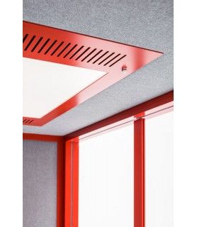 El espacio tranquilo en oficinas de actividad frenética. La cabina acústica Hana funciona bien hasta en los entornos más dinámicos. Su construcción y su forma ergonómica rompen la monotonía del diseño y abren un gran abanico de posibilidades de configuración. Esta cabina acústica portátil se convierte en un retiro que asegura privacidad visual y acústica. Su característica forma, inspirada en la flora triangular, rompe la monotonía de las largas líneas de escritorios, impacta por su diseño y aumenta la creatividad de sus usuarios. Con su iluminación automática y su ventilación silenciosa mejorará la usabilidad. El material aislante usado en el interior y el exterior de sus paredes mejora la calidad del sonido, no solo dentro de la cabina, sino en toda la oficina.