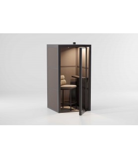 Cabina acústica para tener conversaciones con privacidad en la oficina. Incluye sensor de movimiento para encender la luz y un sistema de ventilación. Con colores personalizables. Consultanos para que te asesoremos.