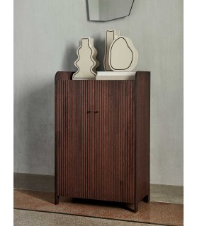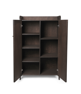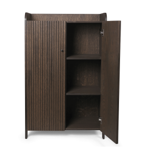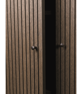 Material: Chapa de roble certificada FSC™ Mix con núcleo de MDF. Teñido de oscuro con puertas talladas.