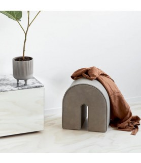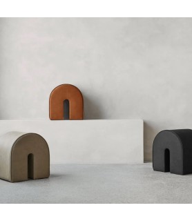 Los pufs son en sí mismos un elemento gráfico construido en torno a principios simples. El puf curvo está hecho de nubuck y la forma redondeada del puf y su diseño distintivo desencadenan nuestra fascinación por la geometría.