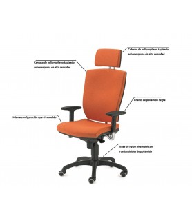 • Asiento y respaldo tapizados sobre espuma de poliuretano de alta densidad.