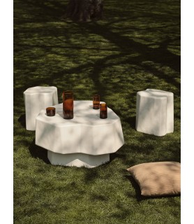 Inspirada en las formaciones rocosas volcánicas únicas que se encuentran en la antigua isla de Staffa en Escocia, la colección Staffa presenta una serie de muebles atrevidos. Rindiendo homenaje a su homónimo, que significa pilar en nórdico antiguo, cada pieza está elaborada íntegramente con hormigón reforzado con fibra de vidrio, mediante un innovador proceso de fundición que proporciona a cada elemento una forma rugosa y desigual que recuerda a bloques de piedra tallada.