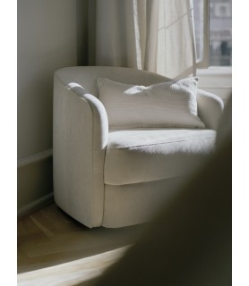 Mientras que los otros miembros de la familia Covent equilibran los elementos; el Covent Lounge Chair y el Covent Sofa presentan un universo de calidez. La parte superior orgánica suave de la silla Covent se ha extendido hasta el suelo, el marco audaz se reemplazó con el tacto suave de una base tapizada y un generoso cojín para sentarse. Este par, que muestra detalles y artesanía de expertos, lo invita a acurrucarse y sentir la ternura de cada superficie tapizada.