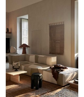 Material: Tejido: Patchwork. Tejidos mixtos que incluyen lino, algodón, algodón reciclado, fibras sintéticas y viscosa. Interior: estructura de madera con relleno de espuma y plumón
