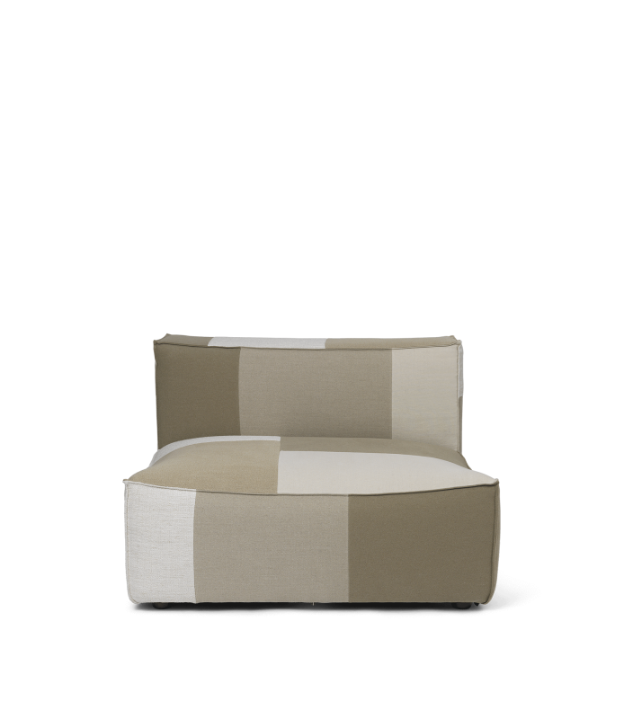 La forma envolvente e inspirada en un puf de nuestro sofá Catena de tiro bajo tiene unas dimensiones generosas para una relajación total y comodidad: . El nombre Catena está inspirado en la curva catenaria, una forma de u que adopta una cadena o un cable cuando se apoya solo en sus extremos, y que se refleja en las suaves curvas y las costuras pespunteadas del sofá Catena. Los diseños acogedores basados en módulos están fabricados con una innovadora espuma microcelular que garantiza la máxima comodidad y durabilidad. La serie consta de seis módulos individuales que se pueden combinar de múltiples maneras para crear la expresión deseada. La tapicería Patchwork está confeccionada con cinco telas cuidadosamente seleccionadas con texturas y tonos diferentes pero complementarios.