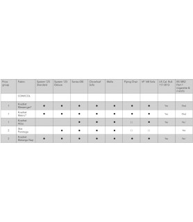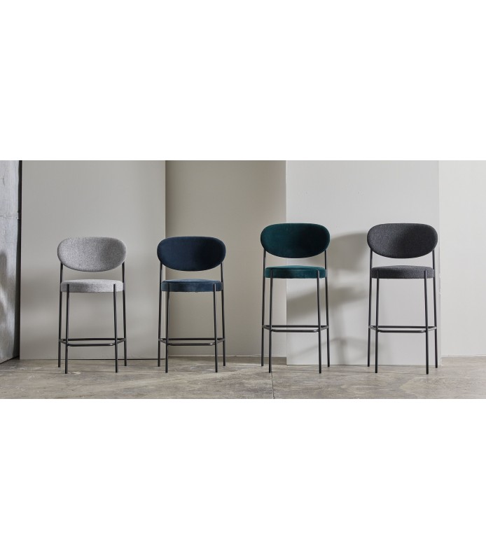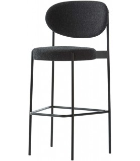 Fully upholstered stacking chair with black, white or burgundy painted metal frame with felt feet.