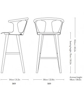 Altura del reposabrazos: 98 cm/38,6 pulgadas / Altura del asiento: 75 cm/30,2 pulgadas