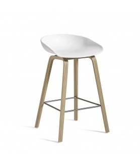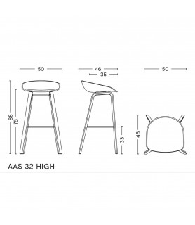 Con un respaldo curvo y patas de madera largas y elegantes, About A Taburete AAS 32 comparte el mismo perfil versátil que los otros diseños de la colección. El asiento de plástico reciclado posconsumo se ofrece en una amplia paleta de colores contemporáneos y múltiples opciones de tapizado frontal, con las patas disponibles en dos alturas en diferentes acabados de madera. La presencia visual simple pero fuerte de la serie la hace ideal como taburete de bar en una variedad de contextos corporativos, públicos y privados.
