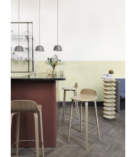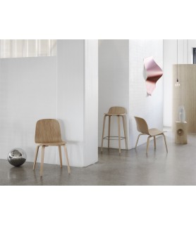 Con su pequeño respaldo curvo y sus largas y elegantes patas, el taburete de bar Visu es el acompañamiento perfecto para cualquier mostrador de la cocina o barra de restaurante. Hecho de roble prensado, la suave silueta de la silla contrasta con la textura de la madera para una estética escandinava atenuada.